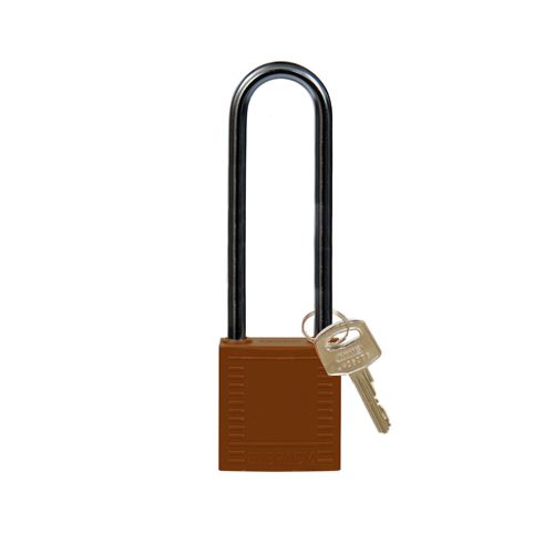 Nylon Sicherheitsvorhängeschloss braun mit (ø 4,70mm, H 75mm) Bügel aus Aluminium und Schlüsselrückhaltung.