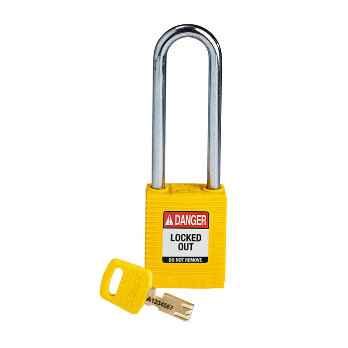 Nylon Sicherheitsvorhängeschloss gelb mit (Ø6,40mm, H 76mm) Bügel aus gehärtetem Stahl.