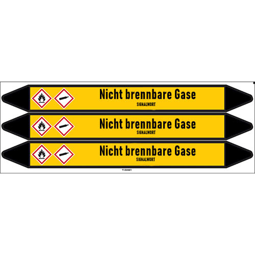 Rohrmarkierer für Chlor Rücklauf in Deutsch met Legende und Text mit oder ohne Trägermaterial. Kategorie: Nicht brennbare Gase. In verschiedenen größen erhältlich.