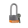 - Laminated steel safety padlock orange with a (ø 7mm, H 51mm) hardened steel shackle