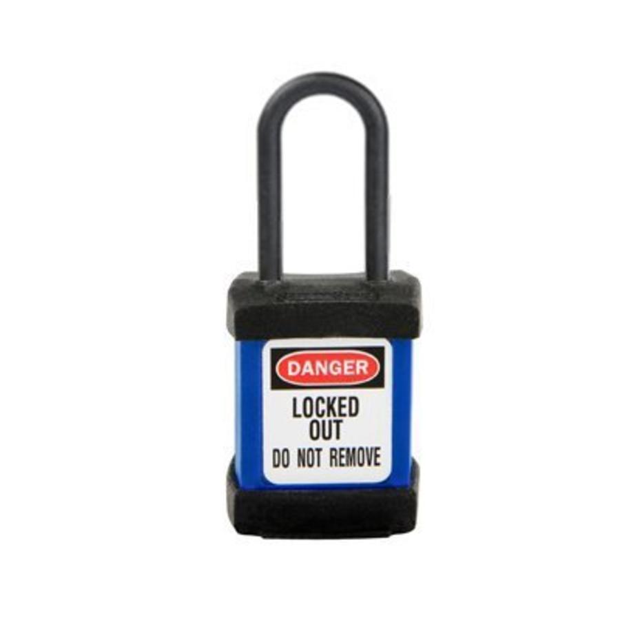 Light-weight (85gr) Zenex composite safety padlock blue with a (4.76mm) nylon shackle.