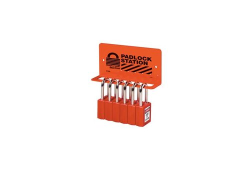 Heavy-duty padlock rack can hold 6-8 padlocks.