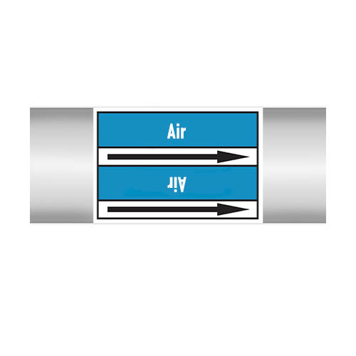 Pipe markers for Air in Dutch with legend and text. Category: Air