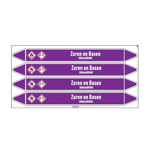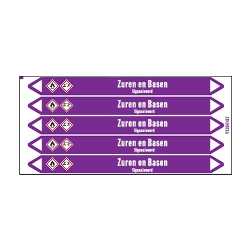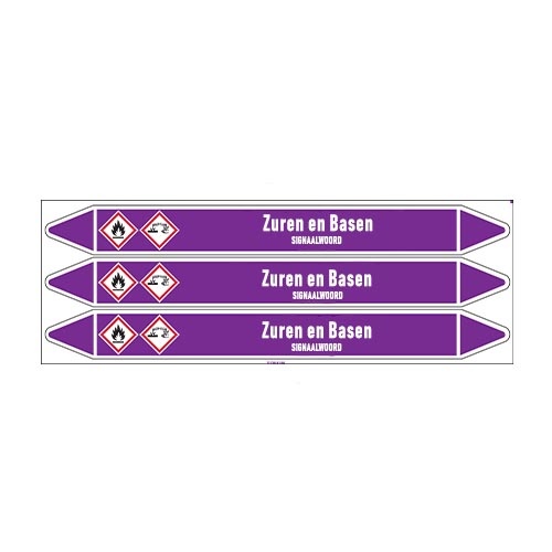 Pipe markers for Mierenzuur in Dutch with legend and text. Category: Acids and Alkalis.