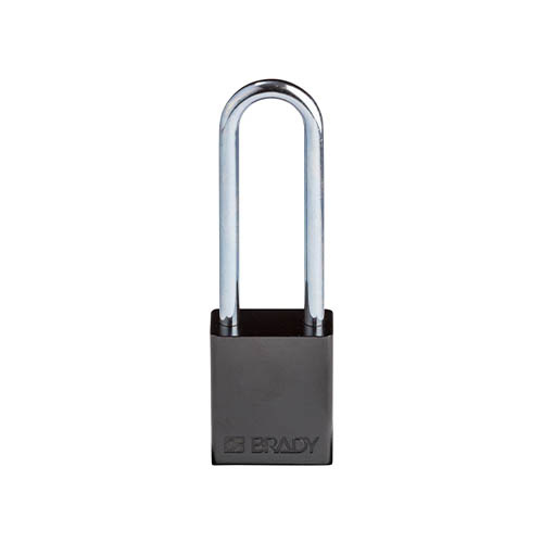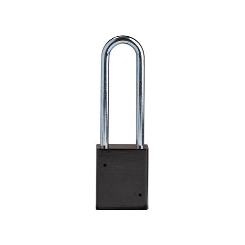 - Aluminium safety padlock black with a (Ø6.40mm, H 76mm) hardened steel shackle.