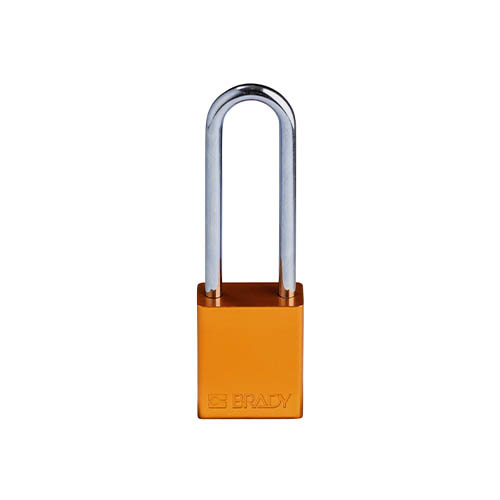- Aluminium safety padlock orange with a (Ø6.40mm, H 76mm) hardened steel shackle.