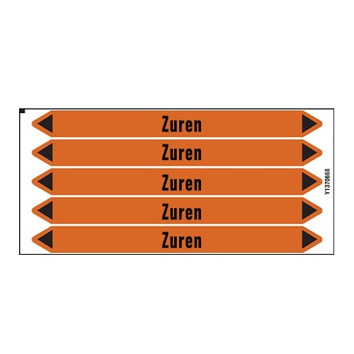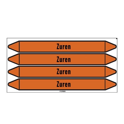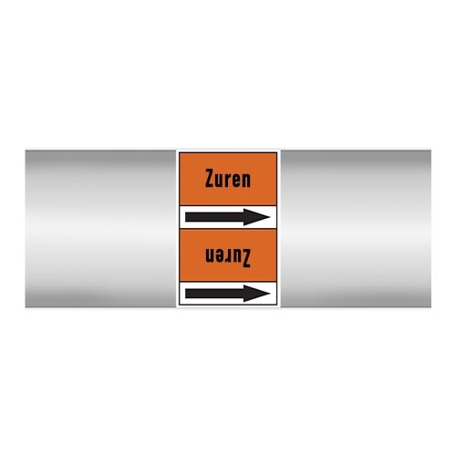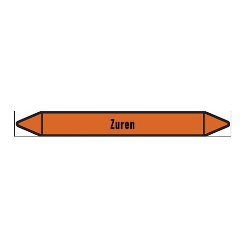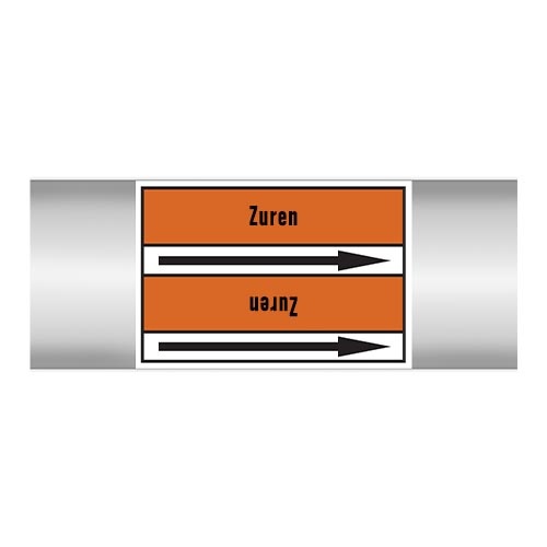 Leidingmerkers voor Zuur in Nederlands met tekst en symbolen. Categorie: Zuren. Beschikbaar in verschillende formaten en met of zonder drager.