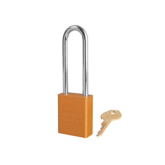 Geanodiseerd aluminium hangslot oranje, met (6 mm) hardstalen hoge beugel.