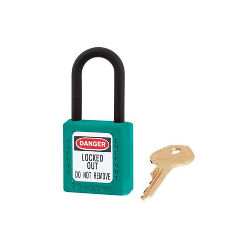 Zenex kunststof composiet veiligheidshangslot zeegroen met (4,76mm) nylon beugel en niet-vastzittende sleutelfunctie.